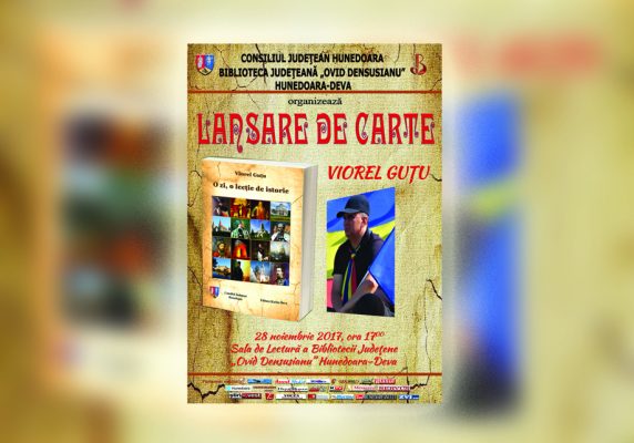 Biblioteca Județeană „Ovid Densusianu” Hunedoara-Deva organizează în ziua de 28 noiembrie 2017, ora 1700, la Sala de Lectură, un eveniment cultural deosebit: întâlnirea cu profesorul de istorie Viorel Guțu care, cu acest prilej, își va lansa volumul intitulat „O zi, o lecție de istorie”, apărut de curând la editura Karina din Deva.