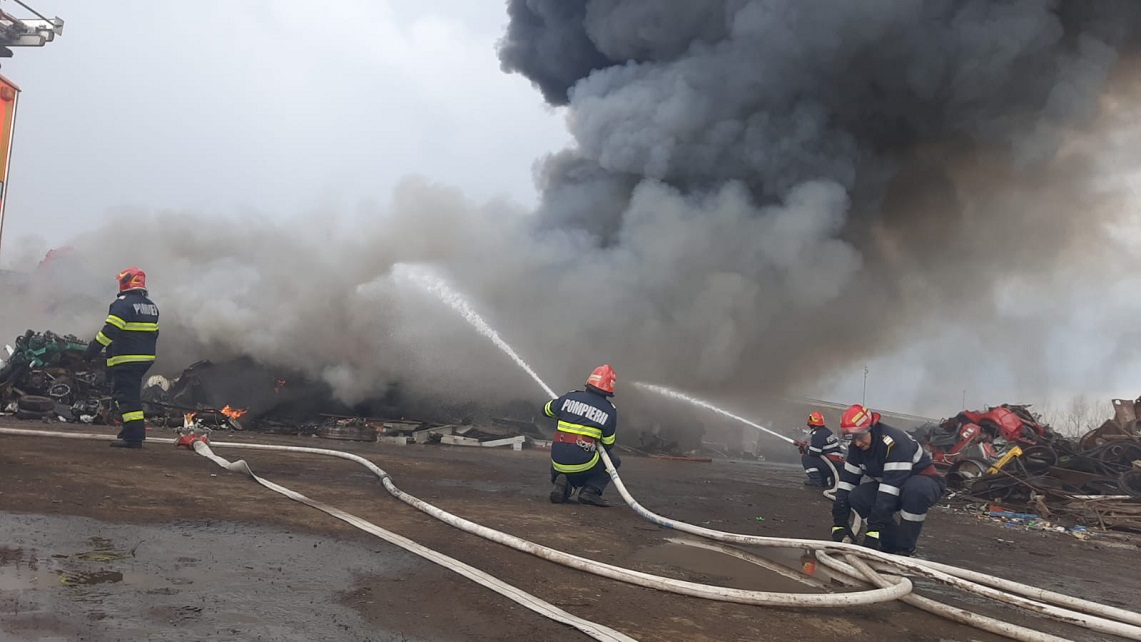 Incendiu de proporţii, cu degajare mare de fum, într-un centru de colectare a fierului vechi din Simeria