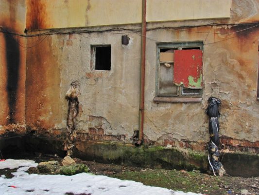 Îţi e greu să crezi că această localitate încă era una plină de viaţă, în urmă cu 15-20 de ani. Dacă au fost cândva noi, tencuiala a căzut de pe aceste blocuri demult, așa că acum arată ca un om descărnat. Viu? Mort? Numai Bunul Dumnezeu poate şti. Deşi dincolo de ziduri este, totuşi, viaţă. Odată ce ţi-ai făcut curaj şi ai intrat, descoperi că unele apartamente sunt îngrijite şi chiar dau, ici-colo, după inima proprietarei, câteva semne de cochetărie. Altele, întocmai precum faţadele: pereţi murdari, miros pestilenţial… Zidurile sunt afumate. La unele geamuri, tâmplărie termopan. La altele, gratii și placaje. Sau, pur și simplu… nimic. Ferestre goale, negre, ca niște carii care vin din trecut și merg, adâncindu-se în structura clădirii, departe, spre un mâine condamnat la incertitudine, dezintegrare şi neputinţă. Paradoxal, în cartierul acesta nenorocit, aproape nimeni nu stă cu uşa încuiată. (Tocmai de aceea, pentru a proteja comunitatea, am omis intenţionat numele localităţii). Sunt comunele sau micile orăşele industrializate de altădată.