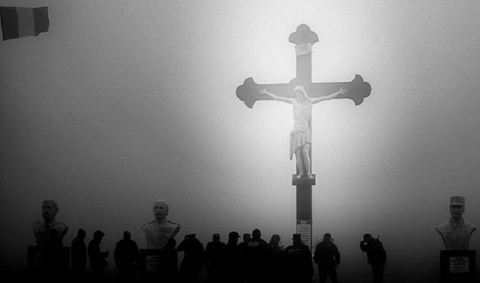 Pe o vreme crâncenă, cu lapoviță, ninsoare și vânt puternic, în munte au fost depuse coroane de flori.