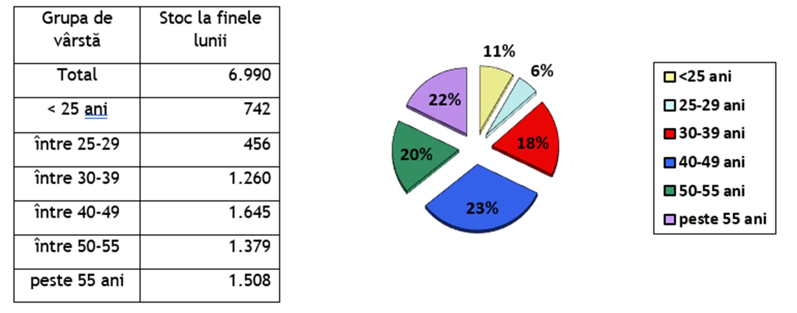 Structura șomajului pe grupuri de vârste se prezintă sugestiv astfel: