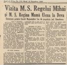 Foto 3 Articol din Ziarul Universul, în care a fost consemnată prima zi a vizitei regale în județul Hunedoara