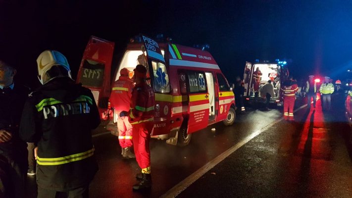 „Pe fondul neadaptării vitezei la condiţiile de drum şoferul unui autocar, în care se aflau 70 de pasageri și încă un șofer, a pierdut controlul asupra direcţiei de mers şi s-a răsturnat în şanţ. În urma evenimentului o persoană a decedat şi alte 32 au fost rănite (încă nu se ştie căte grav şi câte uşor). S-a activat Planul Roşu de Intervenţie pentru victime multiple”, informează Centrul Infotrafic.