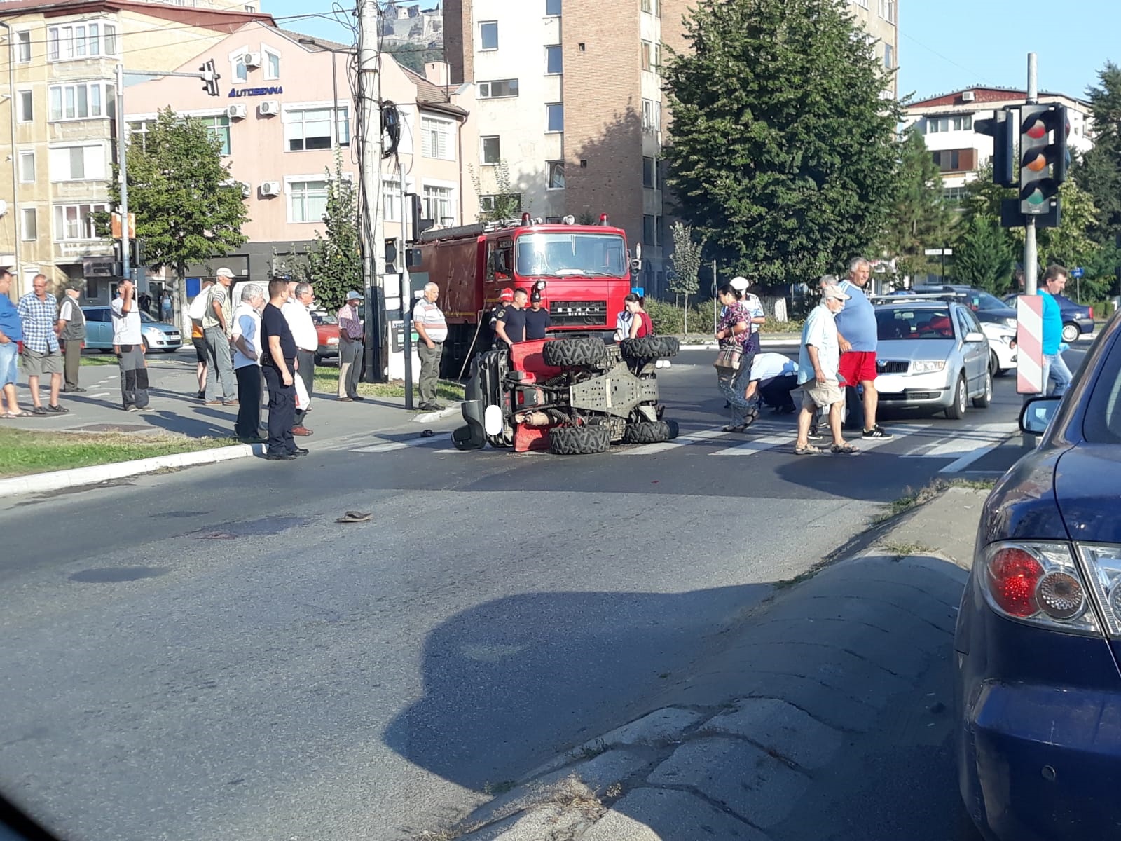 Un conducător de ATV de 42 ani, în timp ce conduce pe Calea Zrandului din Deva pe sensul de mers Arad-Simeria, a intrat într-un autoturism care era oprit regulamentar la trecerea de pietoni pentru a acorda prioritate. În urma impactului ATV-ul s-a răsturnat, iar conducătorul a fost proiectat câțiva metri pe șosea.