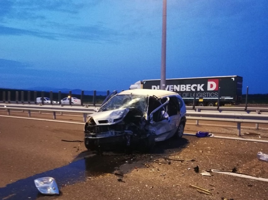 Accidentul s-a produs pe autostrada A1, km 447, sensul de mers Traian Vuia-Timişoara.