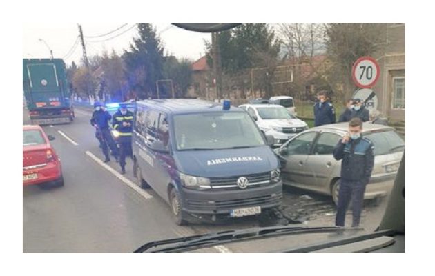 „Astăzi, în jurul orei 15.40, un conducător auto în vârstă de 57 de ani, din municipiul Deva, care conducea un autoturism pe DN66 pe raza orașului Călan din direcția Hațeg-Simeria (în zona unui sens giratoriu), nu a acordat prioritate de trecere și a intrat în coliziune cu o autospecială a Jandarmeriei Române aflată în misiune (cu semnalele acustice și luminoase în funcțiune).