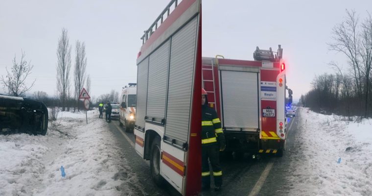 Accident rutier la Călan: un microbuz s-a răsturnat în afara carosabilului