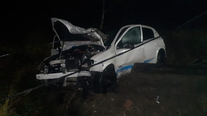 Un accident rutier a avut loc puțin după miezul nopții, pe drumul judetean DJ687 (Hunedoara – Deva). O șoferiță a pătruns pe sensul opus de mers, iar automobilul a rămas suspendat după ce a acroșat un stâlp de iluminat și un cap de pod.
