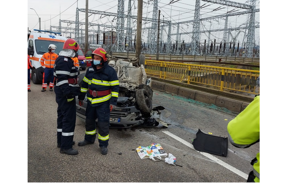 Astăzi, 7 februarie, în jurul orei 10.50, un bărbat în vârstă de 50 de ani, din municipiul Hunedoara, în timp ce conducea un autoturism pe DJ 687 (din direcția Deva – Hunedoara) pe raza localității Peștișul Mare, a pierdut controlul asupra volanului, răsturnându-se pe partea carosabilă.
