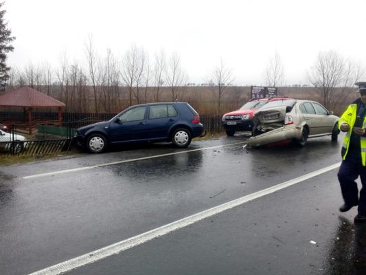 UPDATE: Potrivit informațiilor furnizate de ISU Hunedoara, în urma accidentului au rezultat doi răniți, niciunul încarcerat. Cauza cea mai probabilă pentru care s-a produs accidentul ar fi fost nerespectarea distanței în mers între autoturisme, declară oamenii legii. Se pare că două mașini s-ar fi tamponat, iar una din ele ar fi ricoșat în a treia, parcată regulamentar.