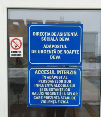 Adăpostul de Urgență pentru Timp de Noapte din Deva este casa oamenilor străzii, mai ales acum, în perioada de iarnă. Cele 30 de locuri de cazare sunt ocupate de către cei care au domiciliul sau reședința în municipiul Deva și pe care gerul îi alungă din locurile unde stau dar și dorm de obicei – străzi, canale etc.