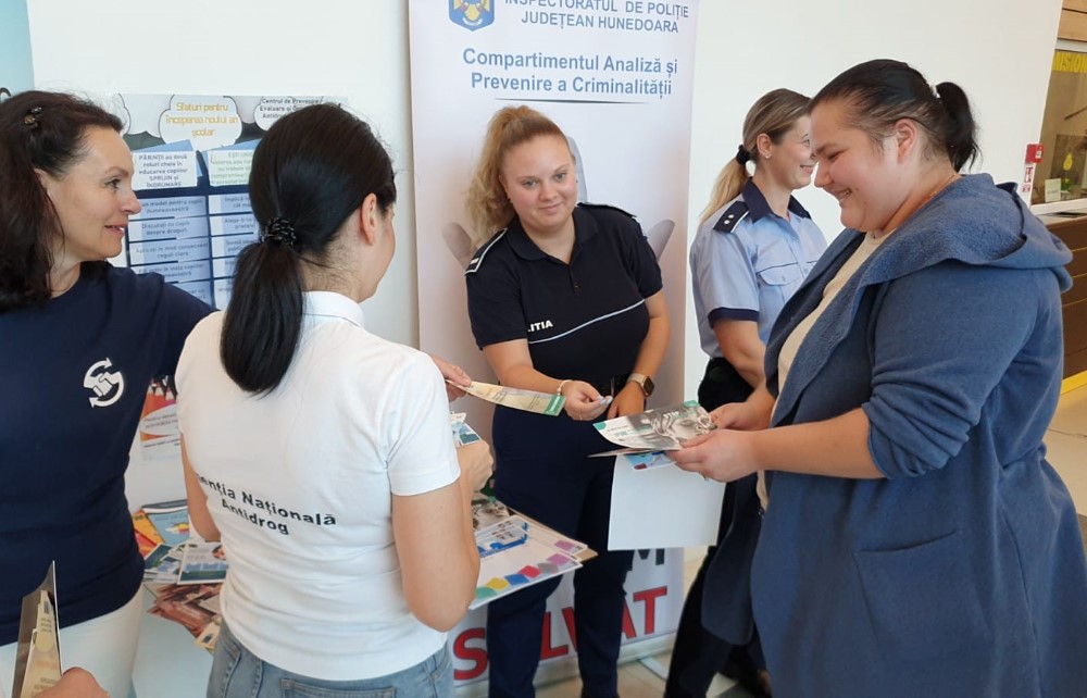 Astăzi, poliţiştii şi partenerii instituţionali au fost prezenţi în incinta unui centru comercial din Deva, unde au purtat discuții cu părinții, cu copiii şi cu bunicii, în care au fost abordate mai multe teme precum comportamentul preventiv acasă, pe stradă, în trafic, interacțiunea cu persoanele necunoscute, grupuri de prieteni, anturaje, bullying și consecințele acestuia precum și despre accesarea în siguranță a rețelelor de socializare sau utilizarea internetului. Siguranța copiilor este răspunderea noastră, a tuturor, părinți, bunici sau reprezentanți ai instituțiilor abilitate; împreună putem combate delincvența juvenilă și să putem ajuta la prevenirea situațiilor ce ar putea conduce la victimizarea minorilor.