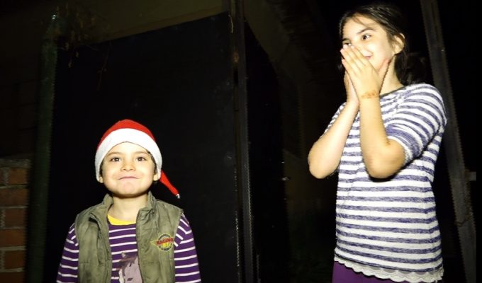 În satele din jur, sunt câteva familii unde micuţii ştiu că nişte oameni îl ajută pe Moş Crăciun şi îşi aşteaptă înfriguraţi darurile. La Vaţa, Denisa şi Alex Trif au ieşit cu mama lor în faţa blocului. Copiii nu au avut o viaţă uşoară şi le recunoşti tristeţea în priviri. Privesc suspicios către străinii care apar cu braţele încărcate şi încet chipurile li se luminează. „Calculator, aveţi?”, întreabă Dragoş Mereuţă.. Copiii clatină din cap şi bărbatul scoate darul: „Uite, acum aveţi! E cu jocuri, programe, tot ce vă trebuie! Să vă distraţi!” Treptat, sunt înconjuraţi de pachete şi cutii. Voluntarii îi ajută să le care în mica garsonieră în care stau: „Sunt aşa nişte copii buni şi deloc pretenţioşi. Nu ştiu ce m-aş face dacă ar fi altfel. Îşi doresc dulciuri de fiecare dată când ieşim, dar pricep când nu se poate”, şopteşte mama micuţilor, doar un pic mai înaltă decât copila ei. Povestea lor i-a revoltat şi i-a pus pe gânduri pe voluntarii care vor să strângă bani pentru o casă sigură pentru cei trei.