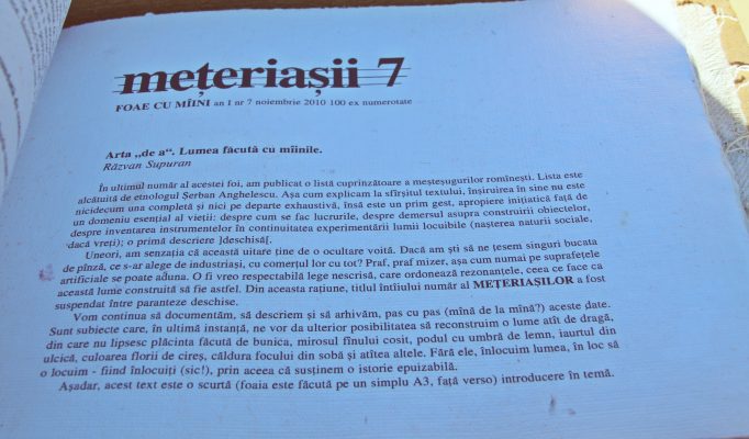 La Muzeul Ţăranului Român am scos o publicaţie „Meţeriaşii”, un fel de proiect al unei enciclopedii universale a meşteşugurilor”, explică el. Ineditul volum conţine şi un text „Moartea hârtiei” semnat de Răzvan Supuran.