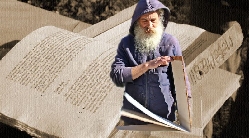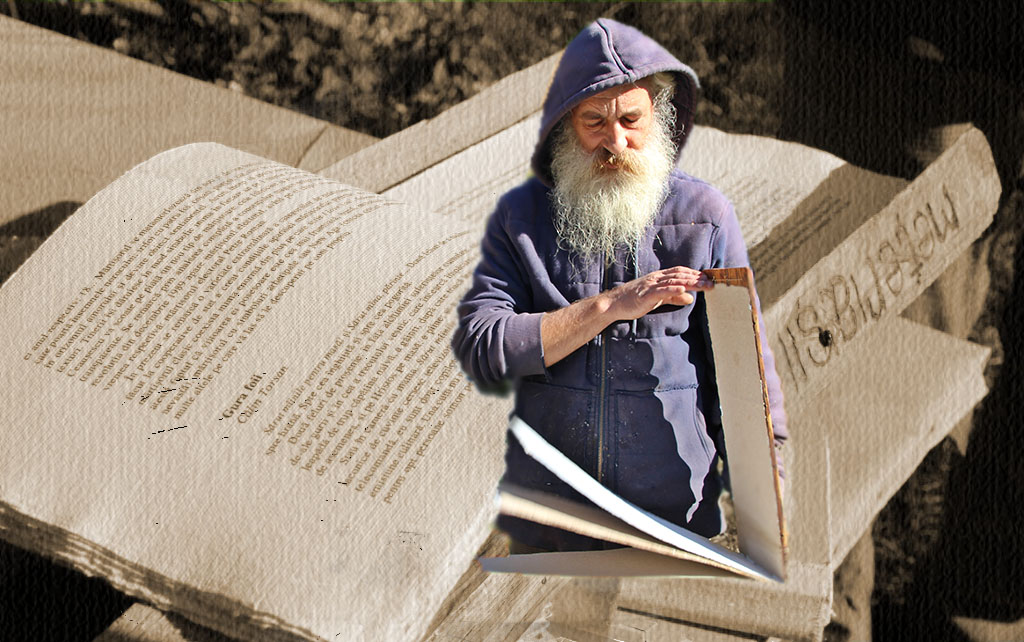 Răzvan însuşi este o privelişte – un meşter hârtier cu părul şi barba albă, cu ochi albaştri şi sinceri, cu glasul deprins să slăvească virtuţiile cărţii şi foilor făcute manual, doar din hârtie reciclată. O viaţă care clădeşte.