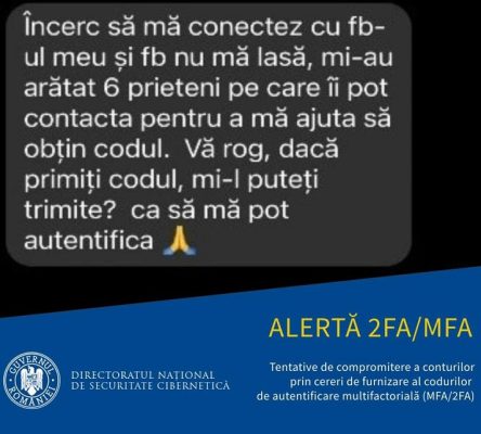 În ultimele zile, Directoratul Național de Securitate Cibernetică (DNSC) a observat o creștere notabilă a utilizării unor tehnici de inginerie socială, folosite de atacatori pentru obținerea accesului ilicit la conturile online ale utilizatorilor. Practic, infractorii cibernetici încearcă să exploateze serviciul de autentificare multifactorială folosit de utilizatori, care le permite securizarea mai puternică a conturilor personale.