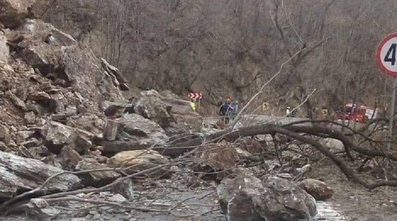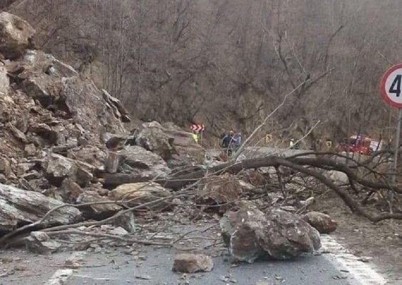 Bucăţile mari de stâncă şi pământ s-au rostogolit pe ambele benzi de circulaţie. Şoferii sunt îndrumaţi pe drumuri laterale.
