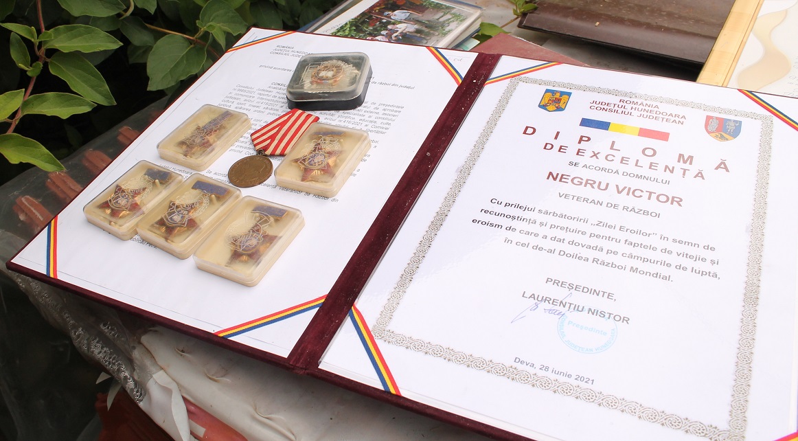 Sărbătoarea a adunat întreaga familie în jurul lui, la căsuţa sa frumoasă, înconjurată de flori şi cu tricolor la poartă. Autorităţile locale i-au pregătit o diplomă, flori şi un tort aniversar: „Este un moment deosebit, l-am sărbătorit pe eroul nostru, care a împlinit 100 de ani. Victor Negru nu a avut doar o viaţă lungă, ci şi una grea. Nu trebuie decât să pomenim că a luptat în cel de doilea război mondial, pe ambele fronturi”, spune Silviu Nan, primarul comunei Gurasada.