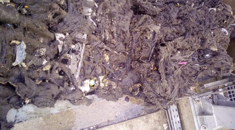În ultimele 24 de ore, în stația de epurare a apei de la Sântuhalm, a ajuns o cantitate impresionantă de gunoaie, printre care: șervețele umede, cârpe, haine, animale moarte și acumulări de grăsime.