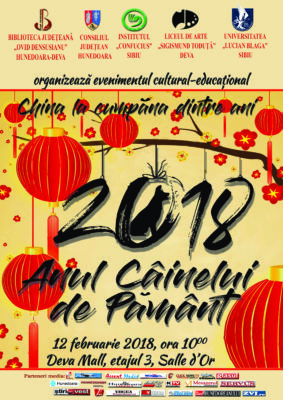 Biblioteca Județeană „Ovid Densusianu” Hunedoara-Deva, în colaborare cu Liceul de Arte „Sigismund Toduță” din Deva, Universitatea „Lucian Blaga” din Sibiu și Institutul „Confucius” din Sibiu, organizează în ziua de 12 februarie 2018, ora 1000, în incinta Deva Mall, etajul trei, Salle d’Or, o manifestare culturală prilejuită de Anului Nou Chinezesc, anul 4716, anul Câinelui de Pământ, care începe la 16 februarie.