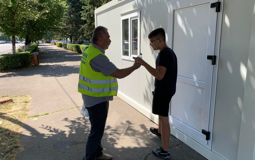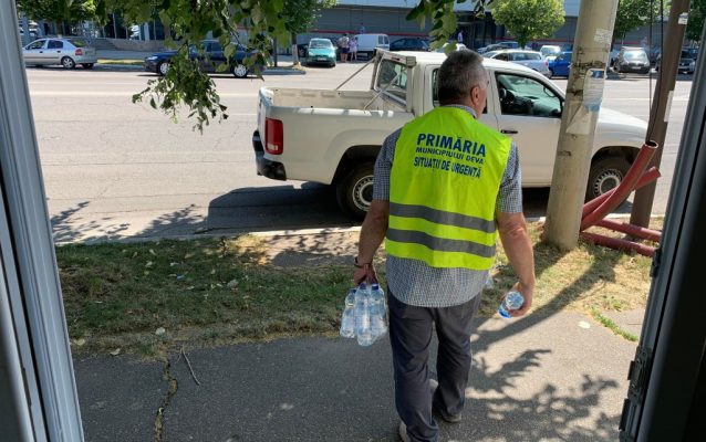 Primăria Municipiului Deva a amenajat astăzi două puncte de distribuire a apei potabile, dotate cu aer condiționat, pentru a veni în sprijinul cetățenilor pe durata caniculei.
