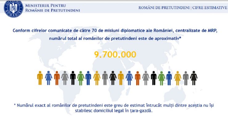 În prezent, conform cifrelor comunicate de 70 de misiuni diplomatice ale României, centralizate de MRP, numărul total al românilor de pretutindeni este de aproximativ 9,7 milioane.