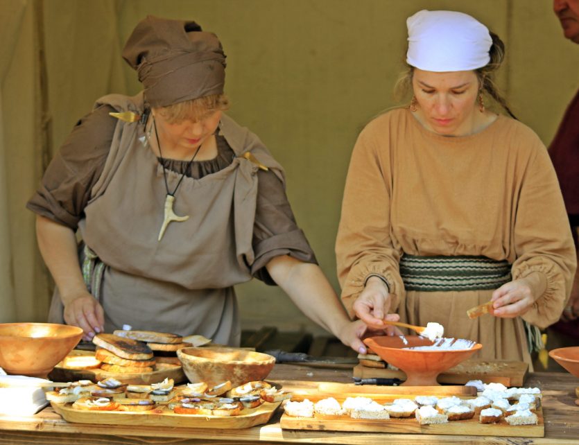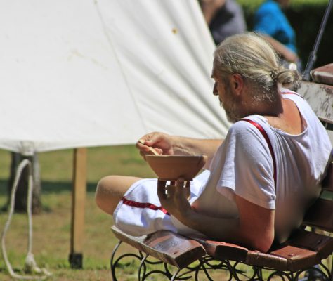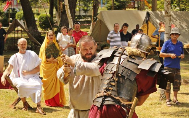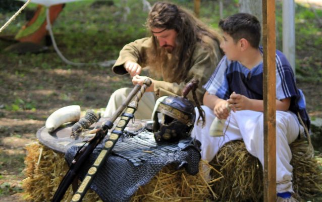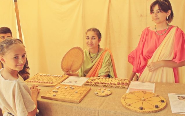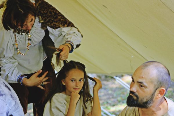 Corturile sunt pline de copiii care se joacă cu lut, învaţă să prelucreze osul, să ţese, în timp ce, în tabăra romană, se încearcă armamentul, dar şi jocurile antice.