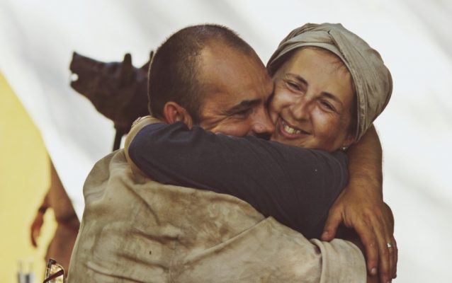 Edi Schneider face parte din echipa României de sculptură cu drujba, dar acum modelează în piatră chipul şefului TDA, Lucian Panov. În doar câteva ceasuri a reuşit să îi surprindă trăsăturile: „Lucrez în colaborare cu natura”, zice bărbatul care are barba împletită şi prinsă cu un os minunat prelucrat.