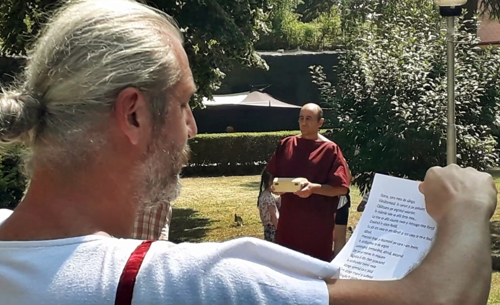 Îmbrăcat la rândul lui în roman, Paul Cheptea explică: „Acum, facem un pic de … fumăraie. Aprindem nişte tămâie, aşa cum se face şi, în prezent, în biserici. Anticii credeau că, prin fumul şi aromele care urcă, ruga lor se duce la zei, iar cuvintele vor fi primite cum se cuvine.”