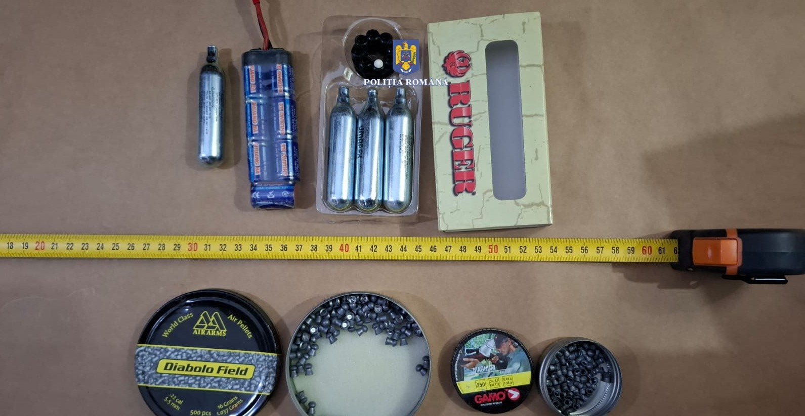 În baza unui mandat de percheziție emis de instanță, polițiștii au efectuat verificări la domiciliul bărbatului, unde au identificat și indisponibilizat mai multe arme și elemente de muniție: o armă letală tip carabină, prevăzută cu baionetă, o armă neletală cu aer comprimat, supusă regimului de autorizare, 19 replici de arme tip airsoft, două cutii conținând proiectile metalice și patru butelii cu aer comprimat CO₂.