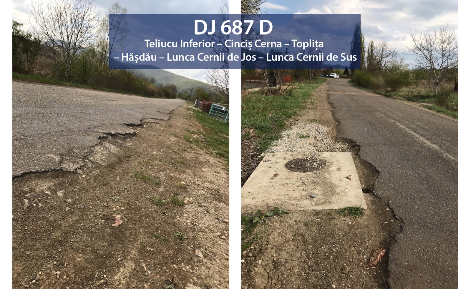 Zilele trecute Consiliul Județean Hunedoara a trimis către Primăria Teliucu Inferior adresa cu numărul 6898 din 29.04 2020 prin care solicită administrației locale să ia măsuri urgente pentru reabilitare și să notifice constructorul să execute lucrări de întreținere periodică pentru menținerea stării de viabilitate a sectorului de drum județean DJ 687D de la km 3+350 – km 10+100 (lungime totală de 6,750 km), astfel încât circulația rutieră să se desfășoare în condiții de siguranță și confort. În perioadele în care pe sectoarele de drum se desfăşoară lucrări de întreţinere, reparaţii, modernizare, reabilitare sau consolidare, această responsabilitate revine executantului lucrării.