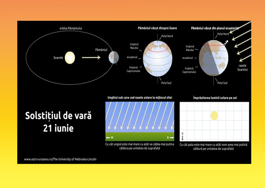 Potrivit informaţiile de pe site-ul Observatorului Astronomic „Vasile Urseanu”, în jurul datei de 21 iunie, longitudinea astronomică a Soarelui este de 90°. Este momentul solstiţiului de vară, care marchează începutul verii astronomice.