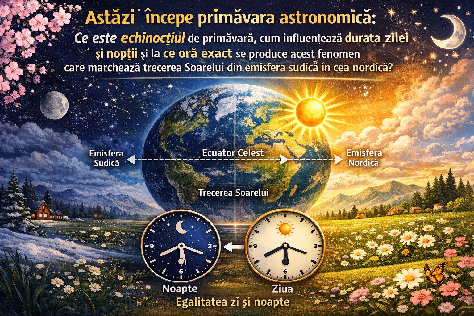 Astăzi începe primăvara astronomică: ce este echinocțiul de primăvară, cum influențează durata zilei și nopții și la ce oră exact se produce acest fenomen care marchează trecerea Soarelui din emisfera sudică în cea nordică?