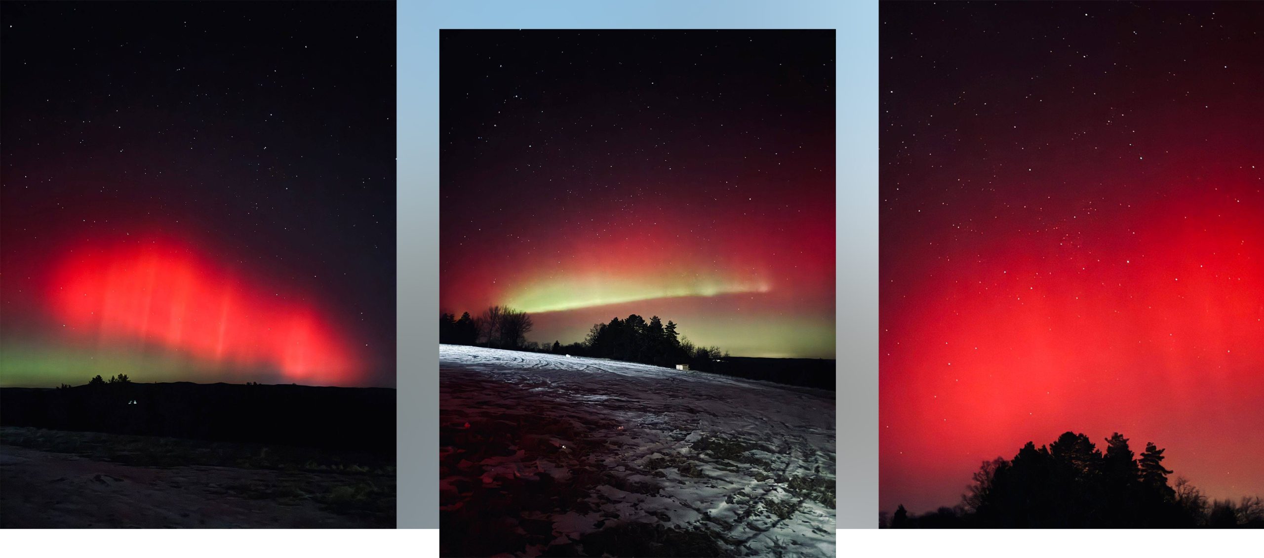 Fotografi și pasionați au imortalizat spectacolul în Hunedoara, Maramureș, Timiș, Bihor, Vaslui și Arad, folosind fie telefoane inteligente, fie aparate profesionale. În Brad, Hunedoara, Gabriela Neamțu a surprins lumina aurorei pe un cer de -12°C, în timp ce Sorin Hotea, din Sighet, a imortalizat benzile roșii și verzi între orele 23:33 și 23:52, cu timpi de expunere de 3-5 secunde. În Ciofrângeni, Argeș, aurora a fost capturată cu Sony A6400 și obiectiv Samyang 12mm AF, cu cadre de 15 secunde, ISO 1250, F2.8.