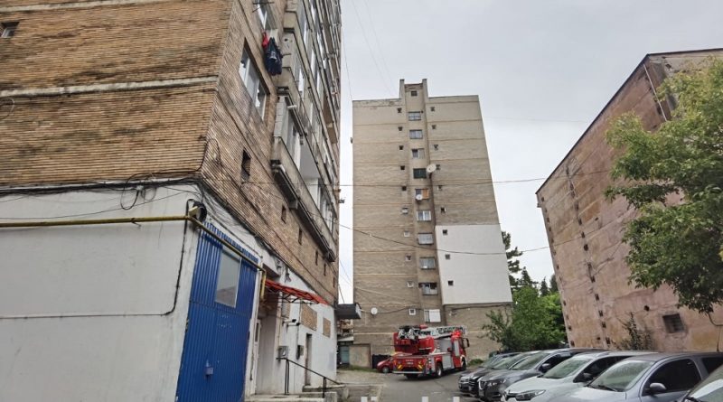 Un autoturism a fost avariat după ce o bucată din fațada unui bloc din municipiul Petroșani a căzut. La fața