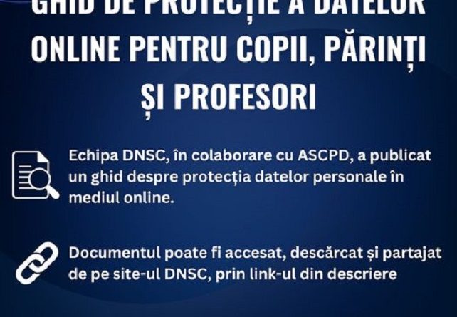 Directoratul Naţional de Securitate Cibernetică (DNSC) publică un „Ghid de protecţie a datelor online pentru părinţii, copii şi profesori”. Documentul,