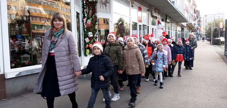 Atmosfera s-a schimbat brusc când un grup de copii s-a urcat la stația de la licee, de pe strada Titu Maiorescu. Cei mai mulți au intrat în spate, purtând căciulițe de Moș Crăciun și haine groase, care lăsau să se vadă costumele populare de sub ele. Glasurile lor au făcut autobuzul să pară mai cald și mai primitor pentru câteva minute, aducând zâmbete și voie bună.