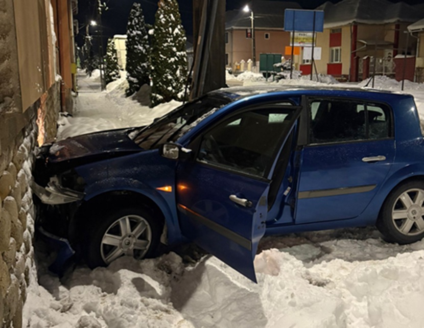 Din cauza neadaptării vitezei la condițiile de drum, autoturismul a părăsit partea carosabilă și a intrat în coliziune cu un stâlp de iluminat public, ulterior cu zidul unei clădiri aflate în construcție. Conducătorul auto a fost imobilizat și identificat ca fiind un bărbat în vârstă de 39 de ani, domiciliat în orașul Călan.