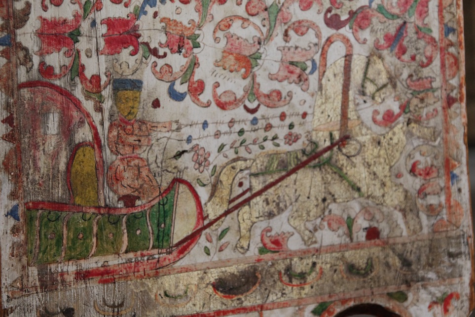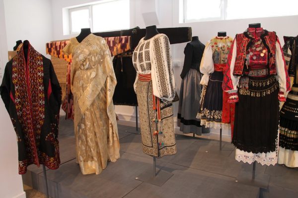 În mijlocul încăperii sunt rostuite pentru vedere tot instrumente de ţesut, de la furcile şi fusurile din Apuseni, la drugile pădurenilor, piesele viu pictate folosite de rusoaice sau alte piese adunate din Balcani. „Preotul care le-a văzut mi-a atras atenţia asupra unui lucru pe care nu îl remarcasem – într-un fel sau altul, toate conţin simbolul crucii şi asta arată cât de importantă e credinţa acestor neamuri”, ne atrage gazda atenţia. Aproape jumătate din expoziţie este rezervată costumelor, un spaţiu care te fascinează rapid. Nici nu mai ştii ce să priveşti: să cuprinzi totul, să savurezi detaliile remarcabile, să asculţi datele istorice sau să notezi cascada de informaţii pe care le oferă gazda. O spectaculoasă robă de femeie bogată din Uzbekistan şi-a găsit loc lângă un kimono japonez de secol 18. „Uau!”, exclami când priveşti ţesătura aristocratelor timpului împodobită cu un decor care poate fi oricând un minunat şi fin tablou „pictat” cu fire metalice şi mătase.