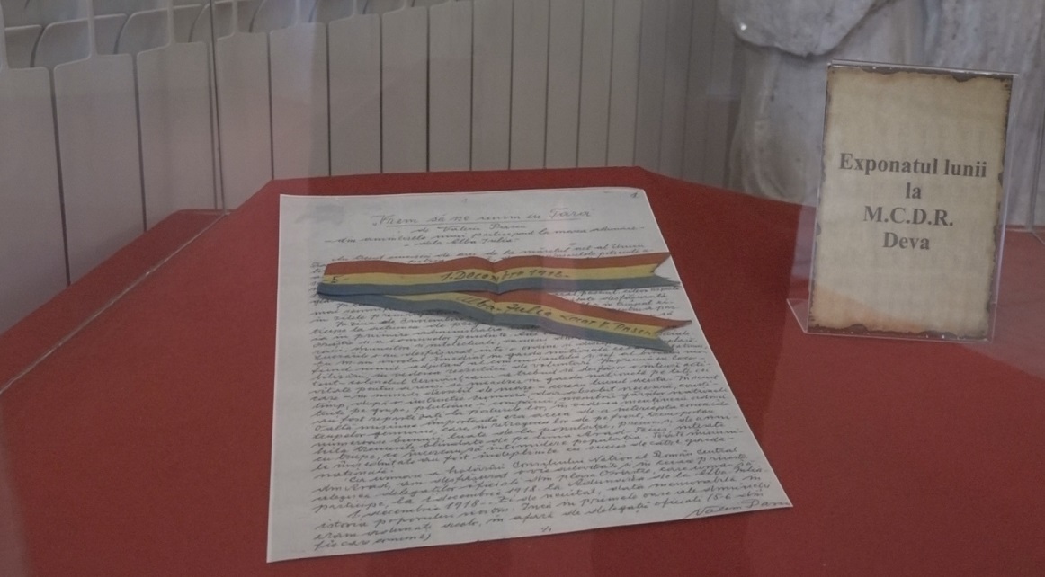 ACTUALITATEȘTIRI INFO HD BANDEROLĂ DE LA MAREA UNIRE, EXPUSĂ LA MUZEUL DIN DEVA 6 decembrie 2018 Petru Meszaros Aceasta a fost purtată de lt. Valeriu Pascu chiar pe 1 Decembrie 1918