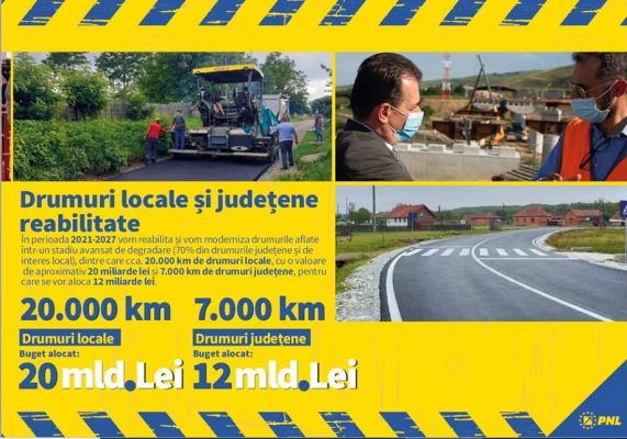Este vorba despre proiecte de reabilitare drumuri din localități din întreaga țară, obiective pe care MLPDA, prin CNI, se angajează să le implementeze. De altfel, guvernarea condusă de Ludovic Orban s-a angajat ferm să modernizeze 20.000 km de drumuri locale și 7.000 km de drumuri județene, în următorii 5 ani!