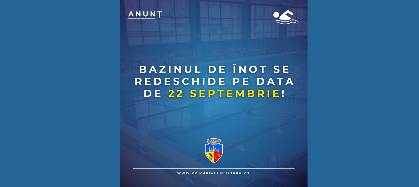 Începând cu 22 septembrie, bazinul de înot din municipiul Hunedoara, se redeschide conform următorului program: