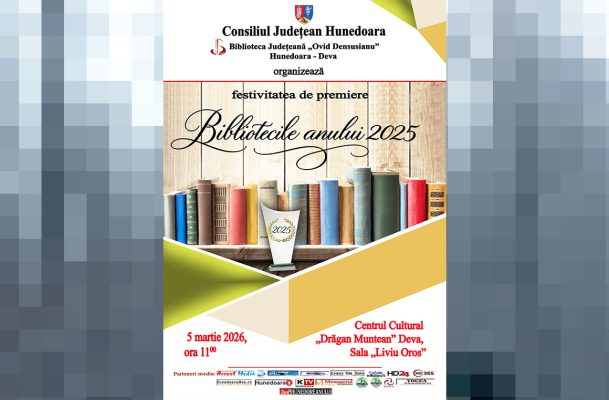 Biblioteca Județeană „Ovid Densusianu” Hunedoara – Deva, cu sprijinul Consiliului Județean Hunedoara, organizează pe 5 martie 2026, de la ora 11:00, la Centrul Cultural „Drăgan Muntean” din Deva, Sala „Liviu Oros”, festivitatea de premiere a bibliotecilor publice din județ.