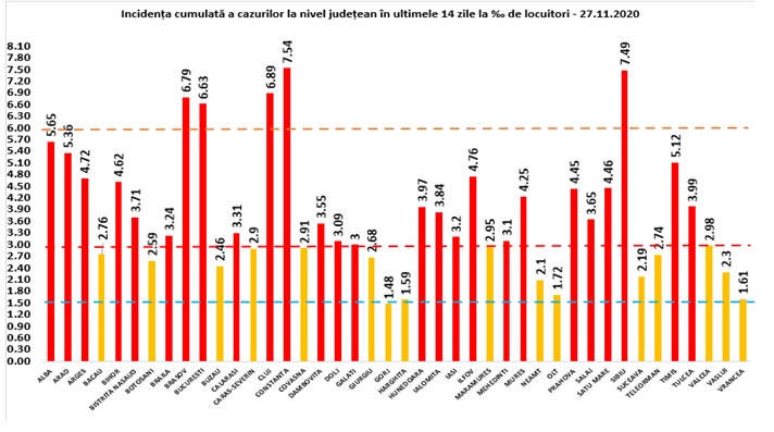 Bilanț coronavirus în România – 27 noiembrie 2020