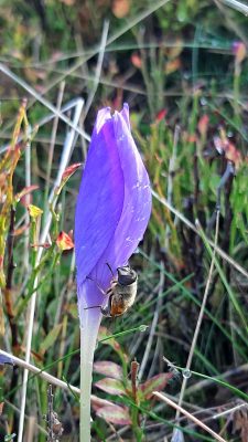 Plăpândele brândușe acoperite încă de roua dimineții sunt asaltate de albinele care lucrează de zori pentru a produce delicioasa miere.