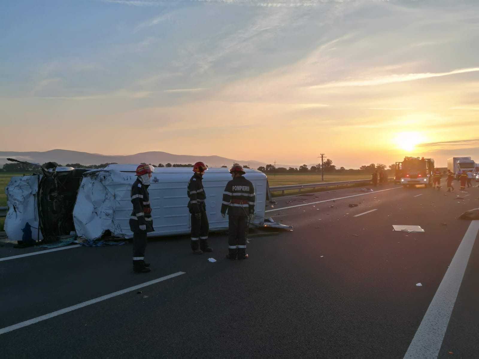 Echipajele de intervenție au găsit la locul accidentului o autoutilitară răsturnată și o victimă decedată. Șoferul a fost proiectat în afara mașini și prezenta leziuni incompatibile cu viața.