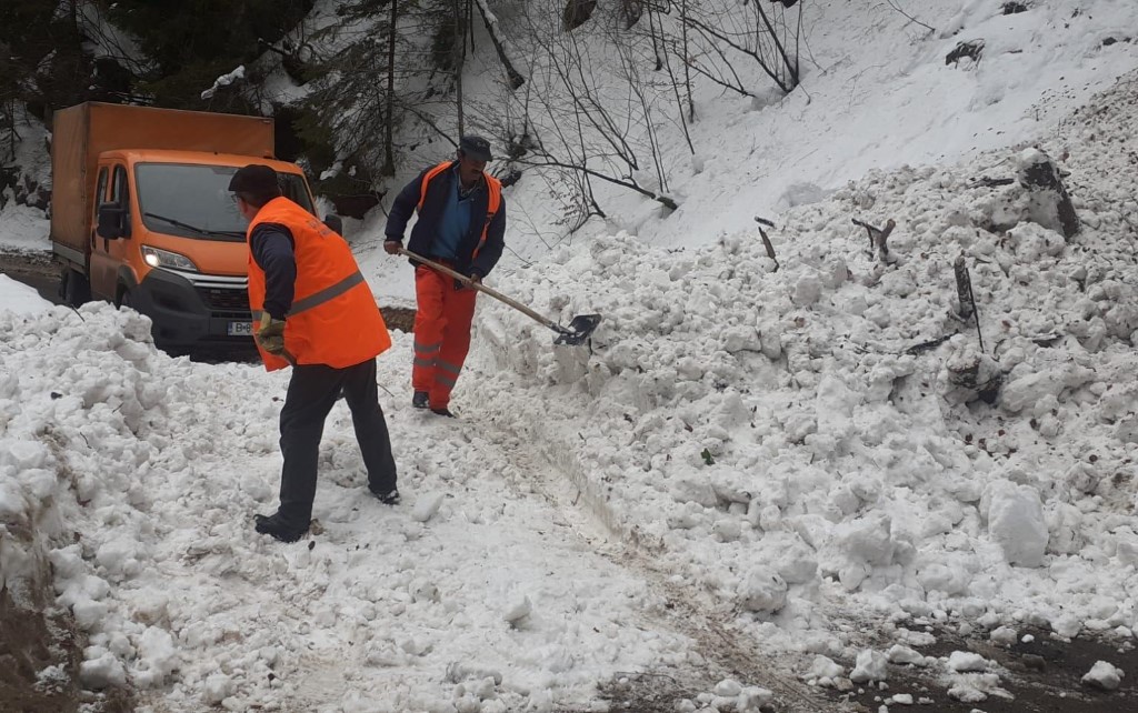 Drumarii de la SDN Deva au intervenit azi noapte și astăzi dimineață pe DN 7A, pe sectorul Obârșia Lotrului – Jieț, pentru eliberarea carosabilului de căderile de zăpadă de pe versanți.
