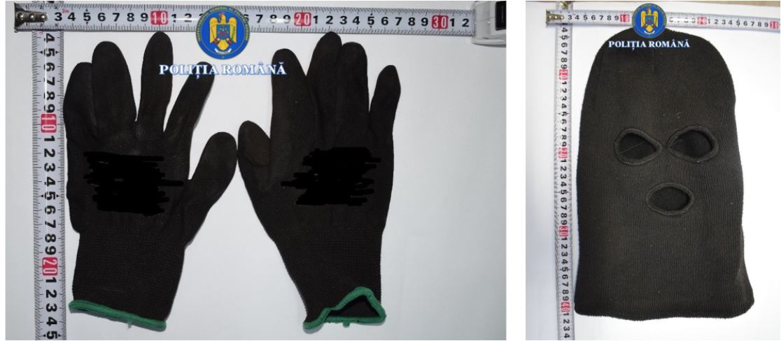 Cu ocazia controlului efectuat, au fost identificate două cagule din material textil de culoare neagră, o șapcă, o pereche de mănuși, o cheie metalică de dimensiuni mari și o șurubelniță.