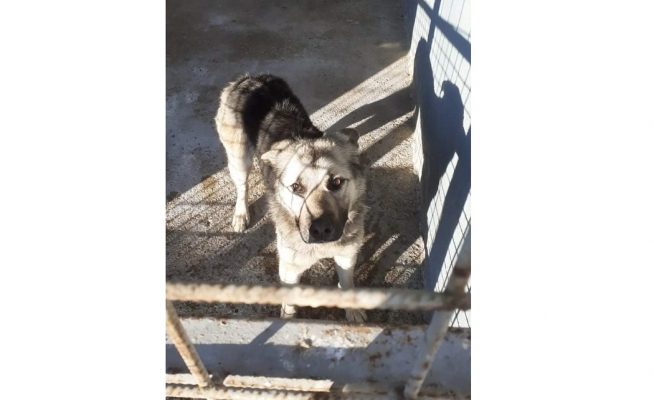 Un câine legat cu lanțul, cel mai probabil de proprietarul lui, de un stâlp lângă linia de cale ferată din zona stației CFR Petroșani a fost salvat în această după-amiază de polițiștii locali din Petroșani.