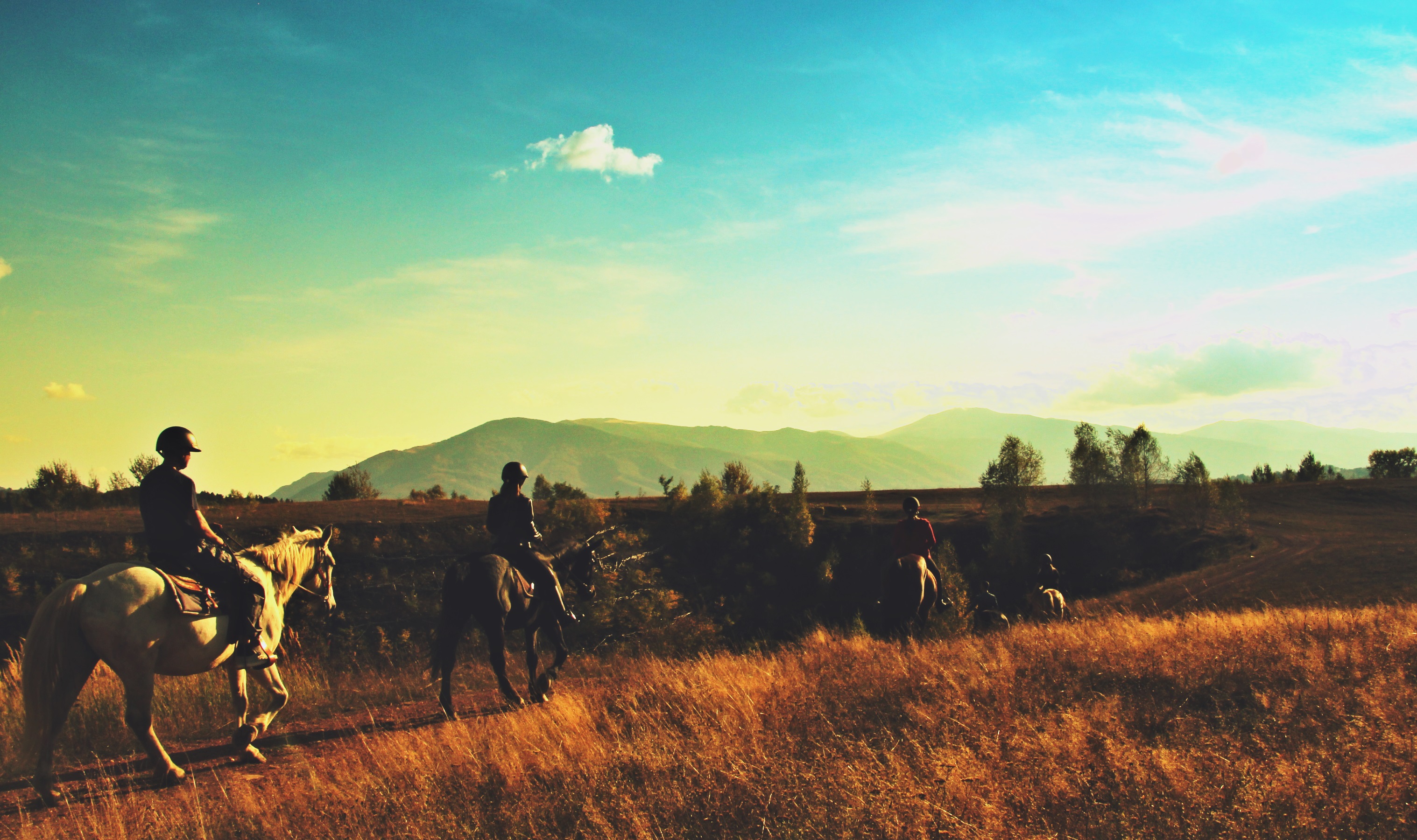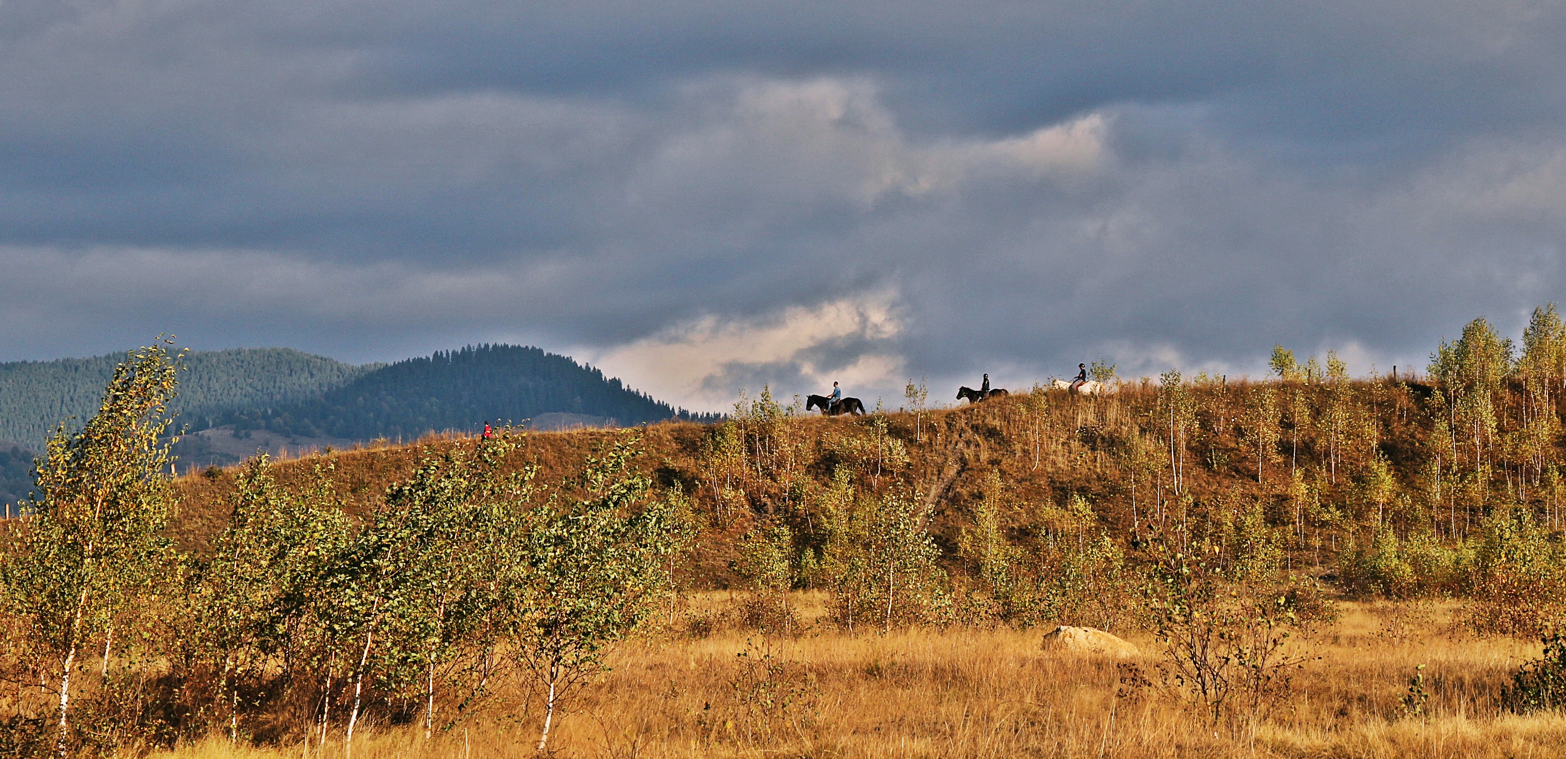 Pe drumul de piatră, urcă domol un şir de călăreţi. Sunetul copitelor bate în liniştea potecilor un marş vioi şi plin de eleganţă. Cavalcada însufleţeşte profilul aspru al munţilor şi dă culoare nuanţelor arse de toamnă. Cete de nori alunecă sub ceruri şi ţin urma cailor care înaintează în pas liber prin peisajul montan fabulos.